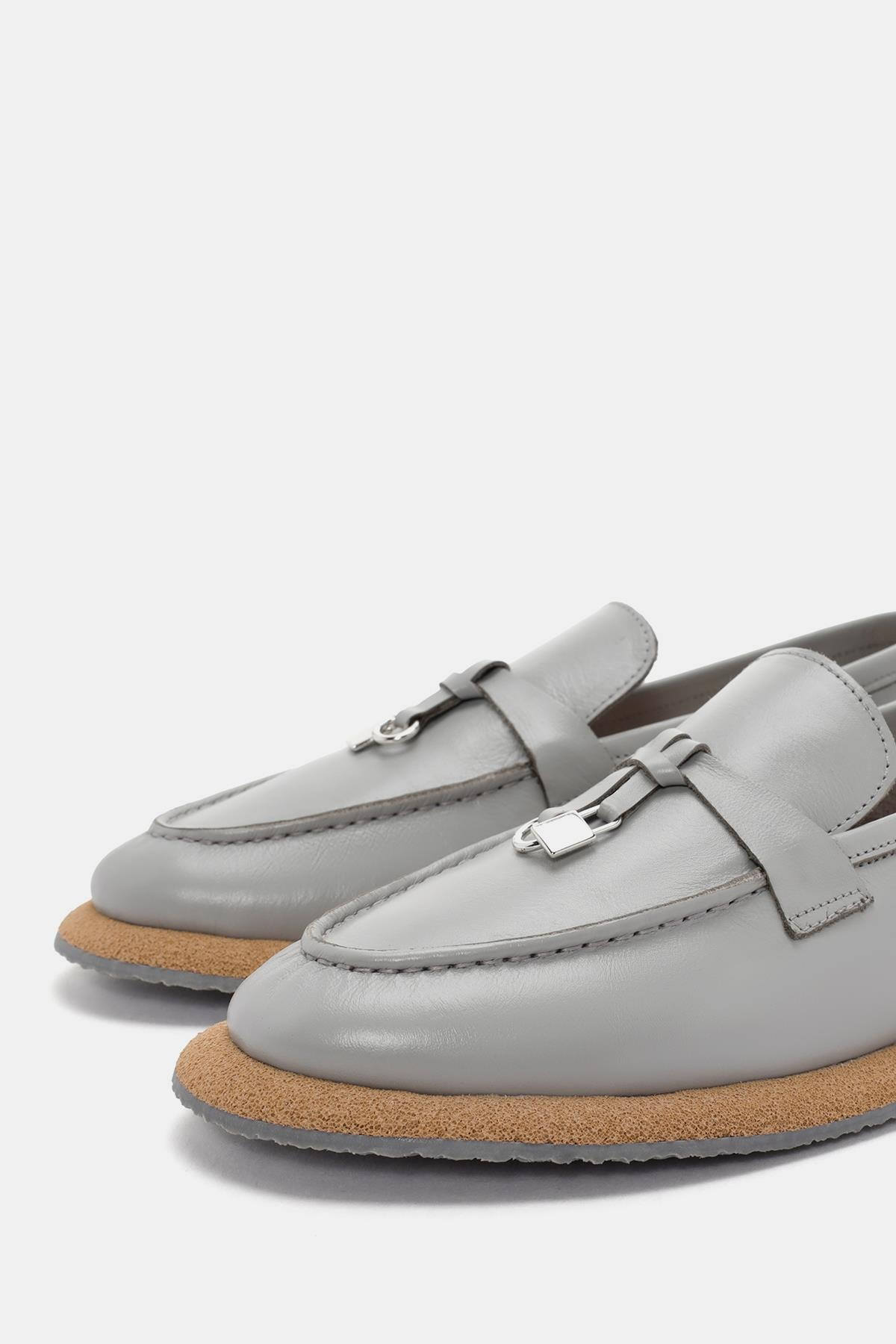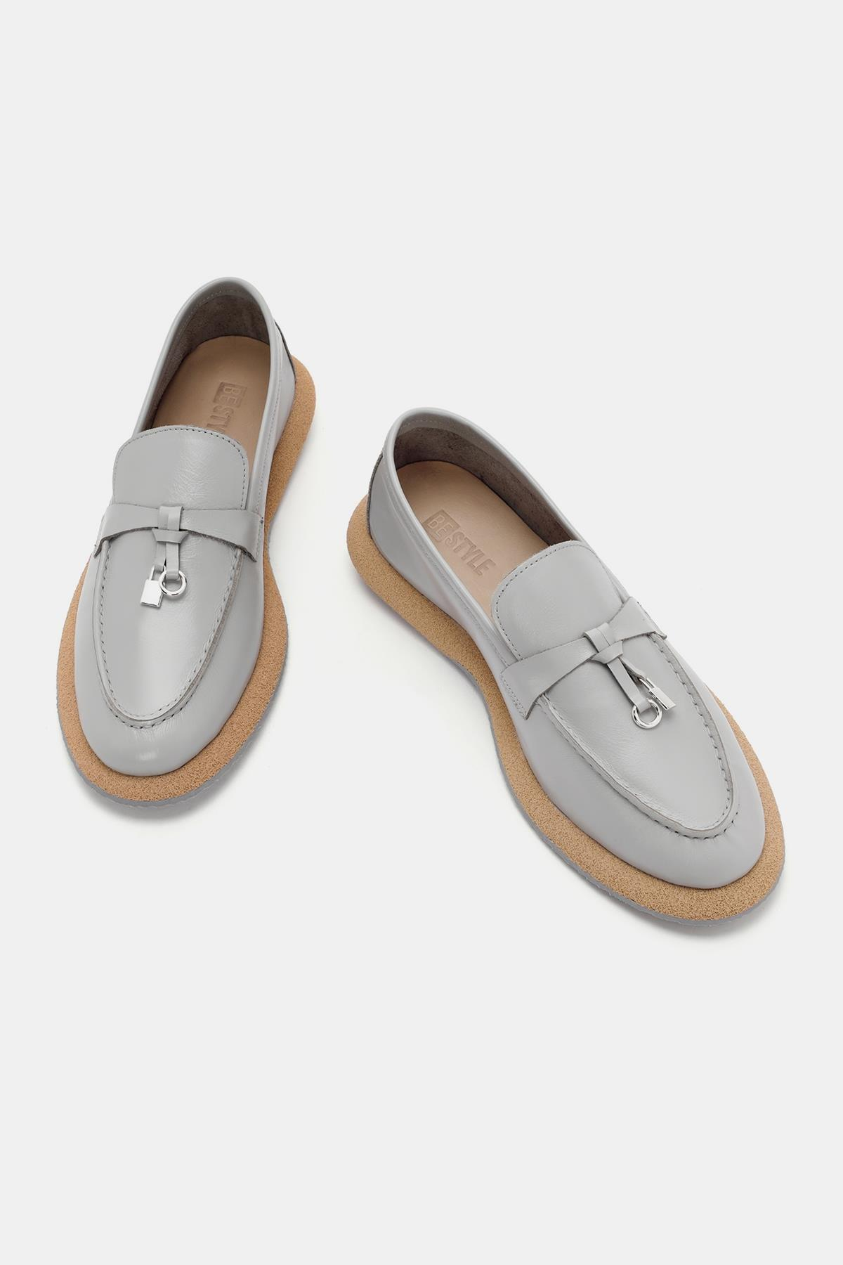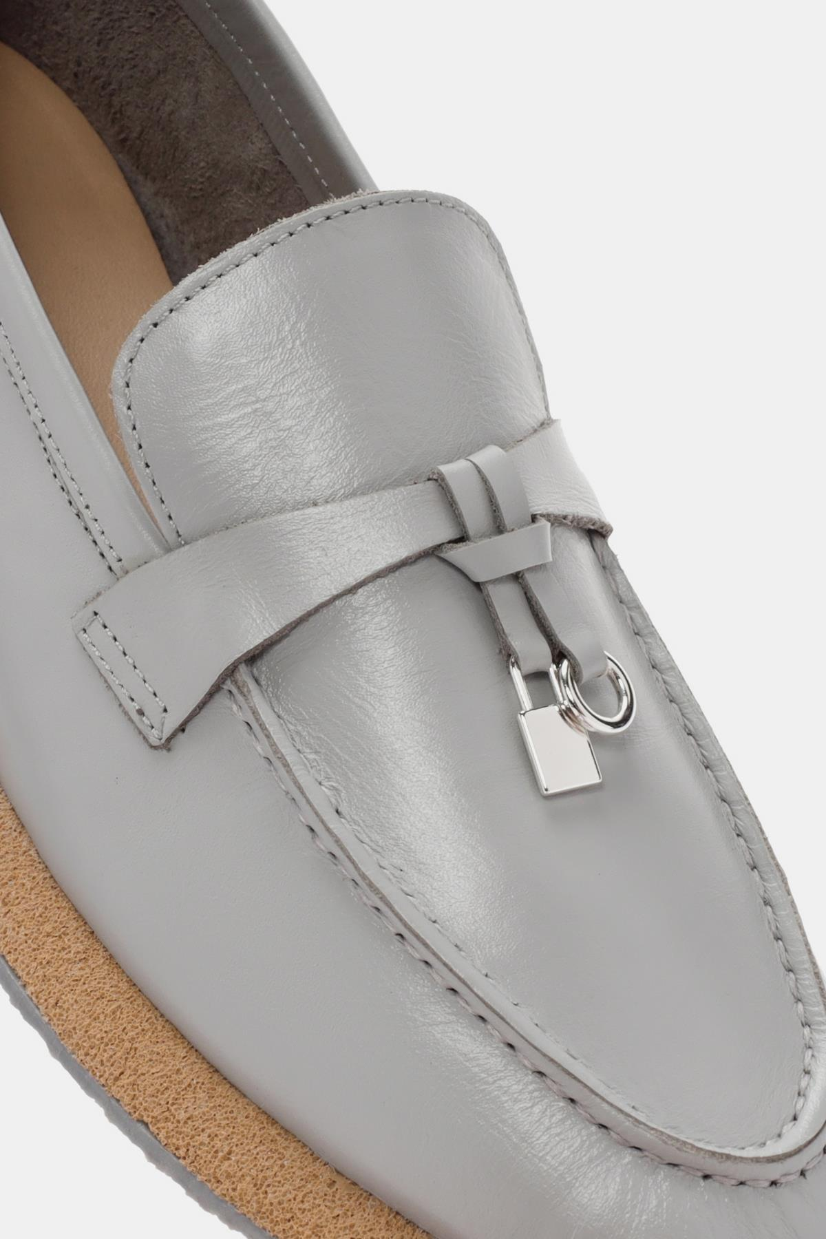 Aden Kadın Gri Deri Loafer, şık ve rahat tasarımıyla günlük giyimin vazgeçilmezi. Yüksek kaliteli deri malzemesi ve zarif gri rengi, her türlü kombinle mükemmel uyum sağlar.