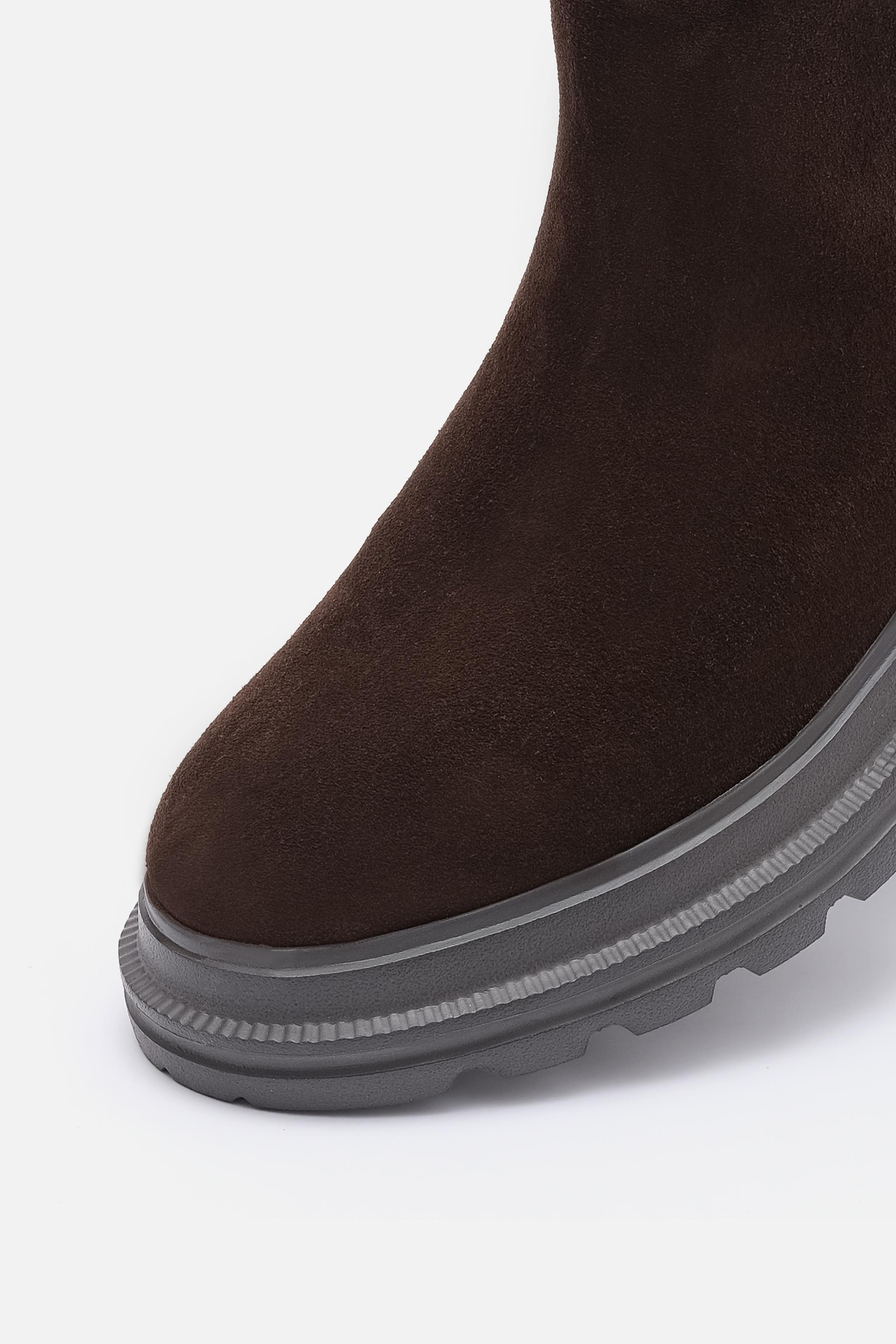 Bu bot, dış kısmında gerçek süet deri kullanılarak üretilmiş, böylece dayanıklı ve şık bir görünüm sunarken iç kısmı ise yumuşak peluş malzemesiyle kaplanmış, ayakları sıcak tutarak ekstra konfor sağlıyor.