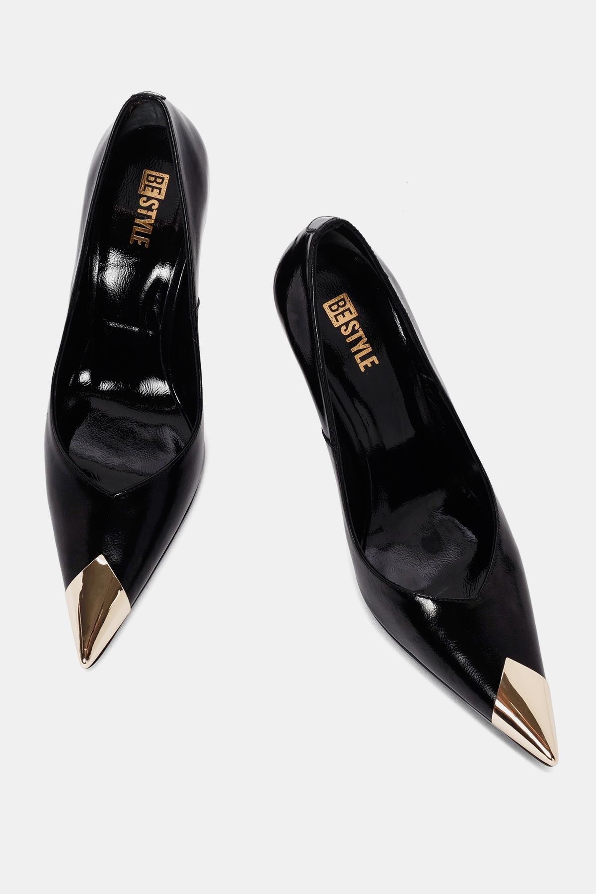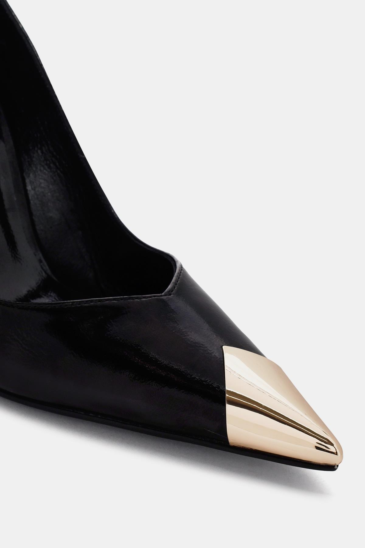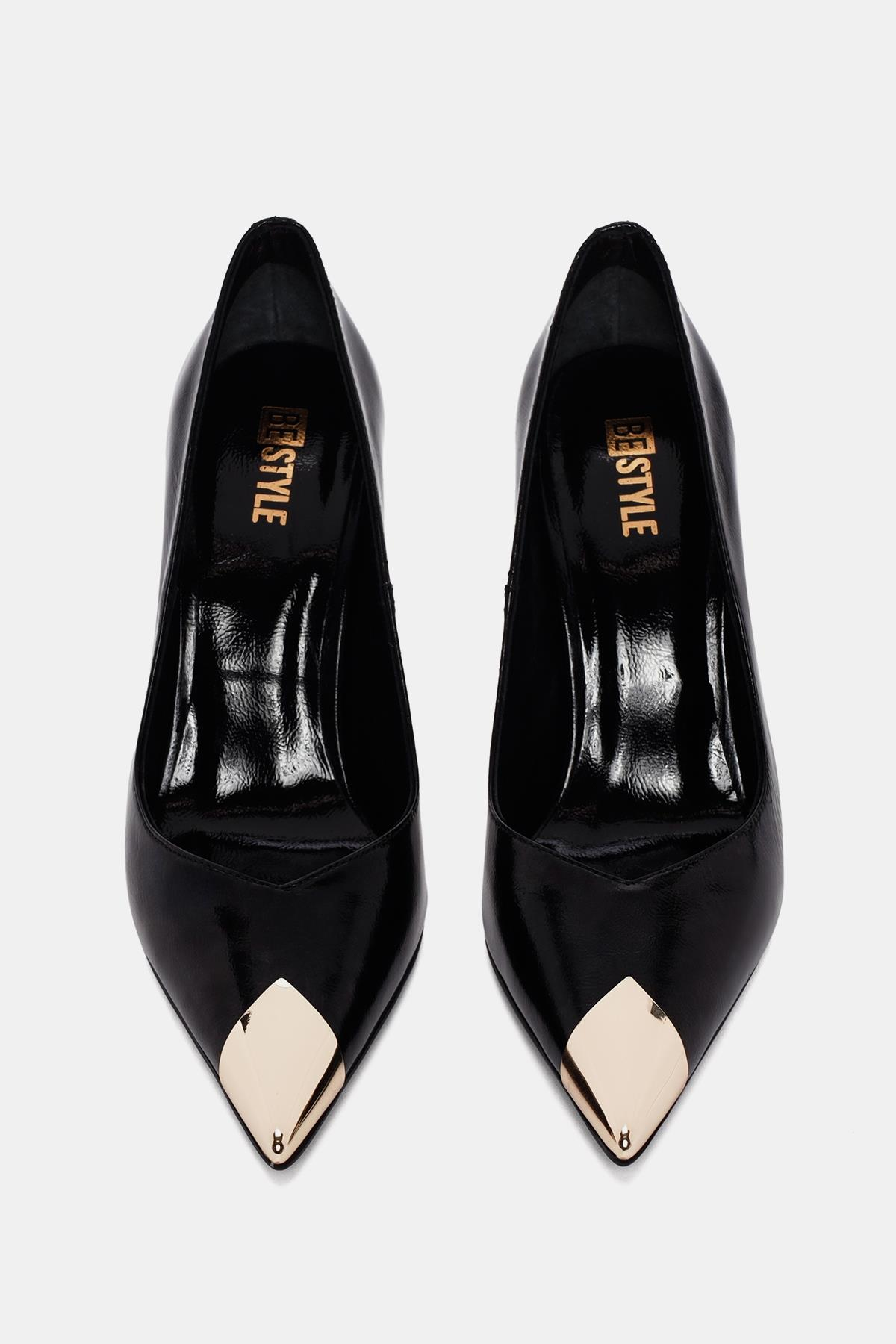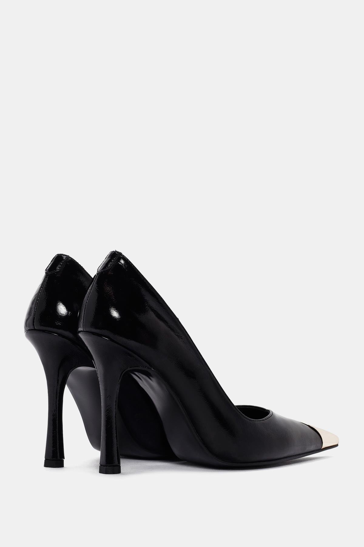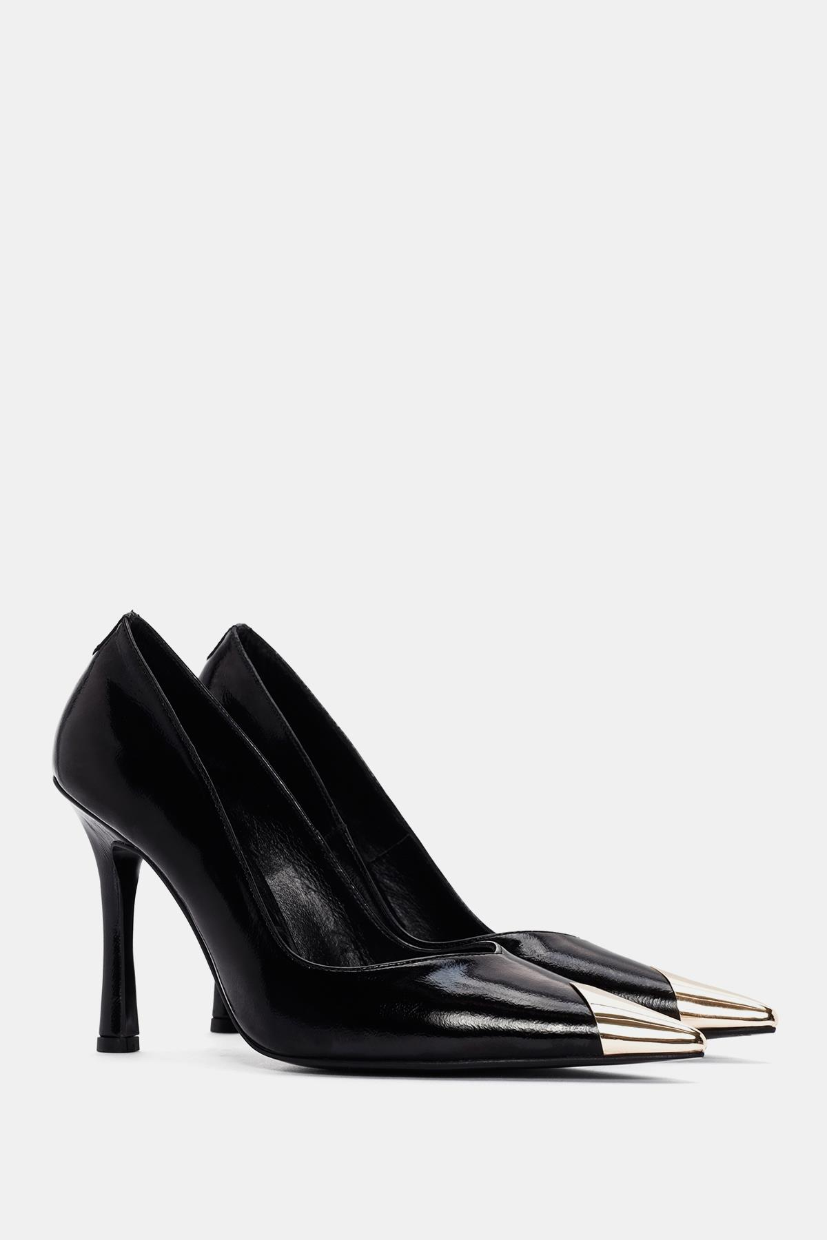 Cherry Kadın Siyah Rugan Metal Detaylı Gerçek Deri Topuklu Ayakkabı, zarif ve şık bir tercih sunar. Klasik siyah rugan malzeme ve metal detaylarıyla dikkat çeker. Günlük kullanımdan özel davetlere kadar her ortamda şıklığınızı tamamlar.