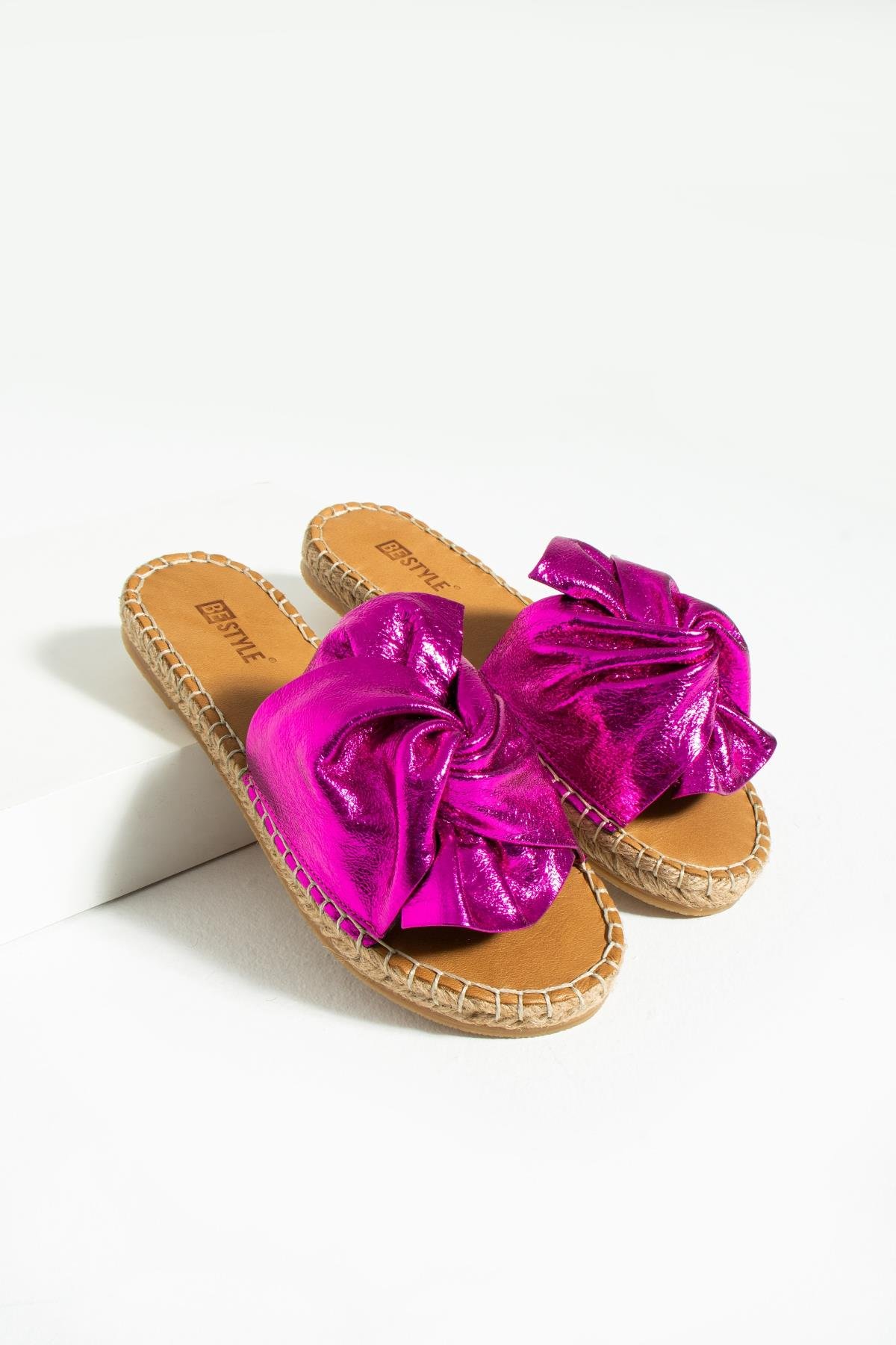 Electra Kadın Metalik Fuşya Hasır Düz Taban Terlik, canlı metalik fuşya rengi ve şık tasarımıyla yaz ve bahar aylarında stilinizi öne çıkarmak için tasarlandı. Metalik fuşya suni deri dış materyali, terliğe hem dikkat çekici bir parlaklık hem de modern bir dokunuş katarken, hakiki deri iç materyal, ayağınızı nazikçe sararak gün boyu konfor sağlar.