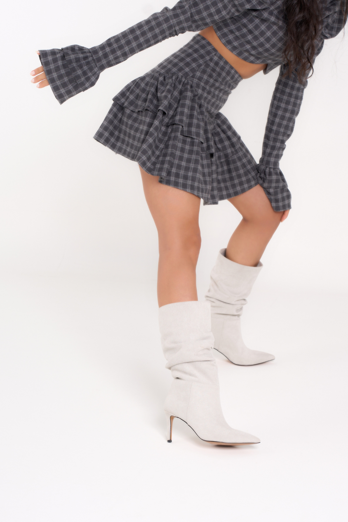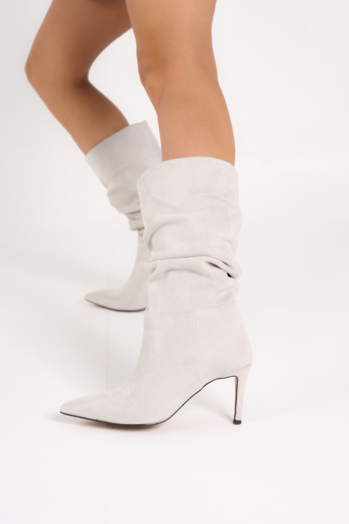 Fancy Kadın Taş Süet Topuklu Çizme, Bestyle markasının zarafeti ve şıklığı mükemmel bir şekilde birleştiren göz alıcı tasarımlarından biridir. Suni süet dış materyali ile üretilen bu çizme, taş rengin doğal ve sıcak tonlarıyla sofistike bir görünüm sunar. Süet malzemenin yumuşak dokusu, çizmeye hem lüks bir his kazandırır hem de kalitesini vurgular.