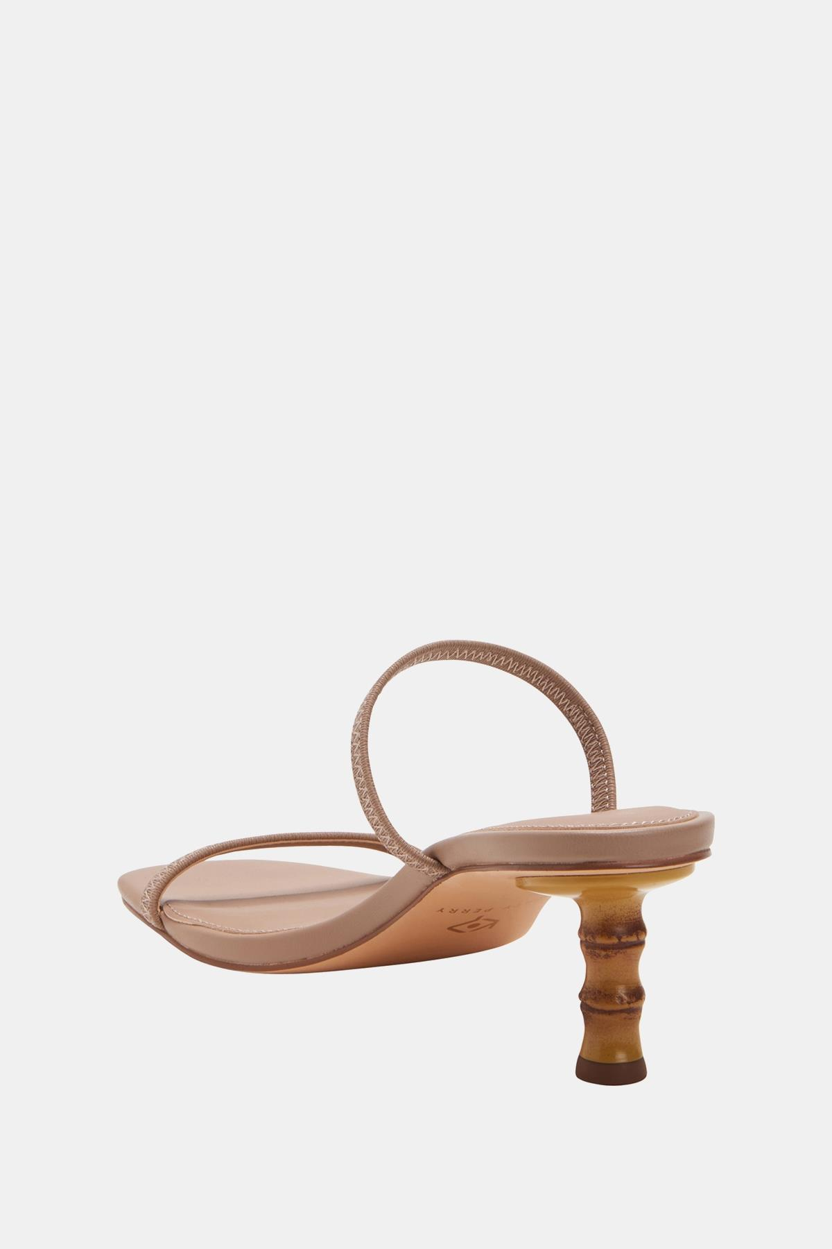 Katy Perry'nin Mirror Nappa malzemesiyle tasarlanan Leilei Terlik, konfor ve stili birleştiren elastik bir üst kayış ile sergileniyor.