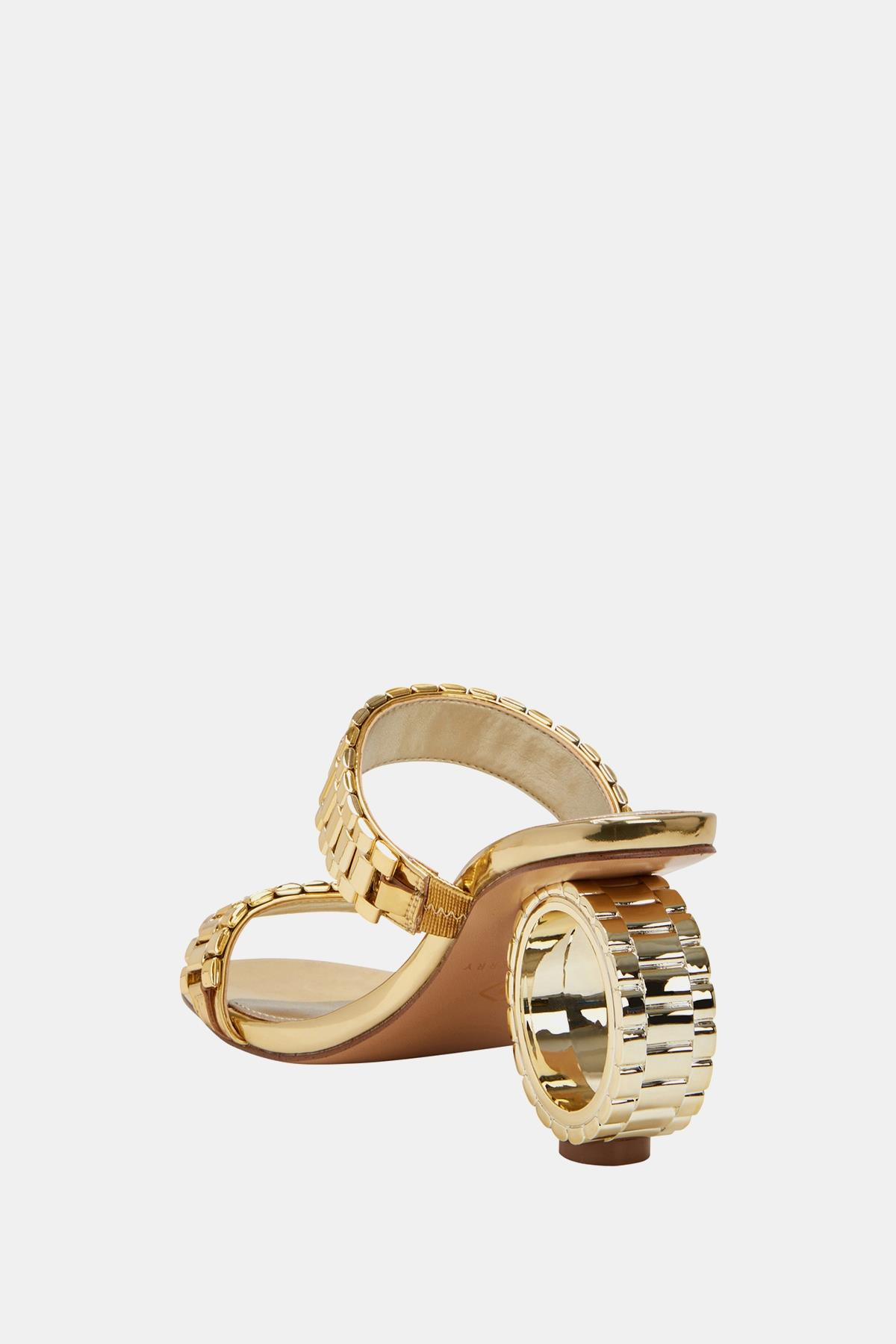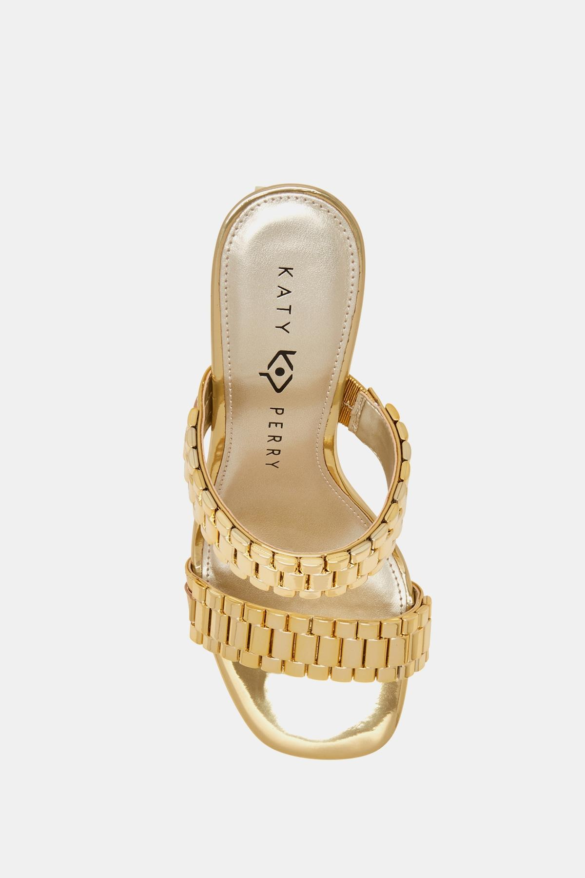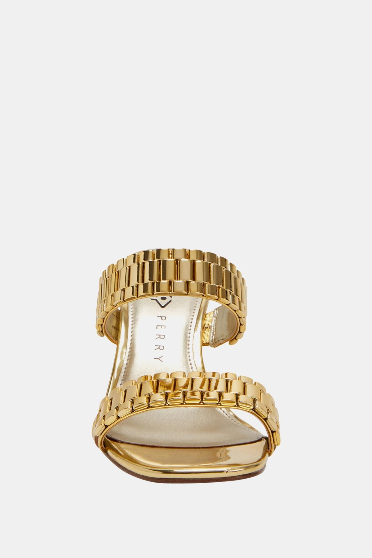 Katy Perry The Linksy Kadın Metalik Altın Roleks Topuklu Terlik, ayna gibi parlayan metalik altın rengiyle her ortamda dikkatleri üzerine çekiyor. İki bantlı üst kısmı, ayağınıza rahatça oturur ve şık bir görünüm sunar. Özgün elektrokaplanmış saat zinciri topuk, bu terliğe sanatsal bir hava katarken, her adımda stilinizi vurgular.