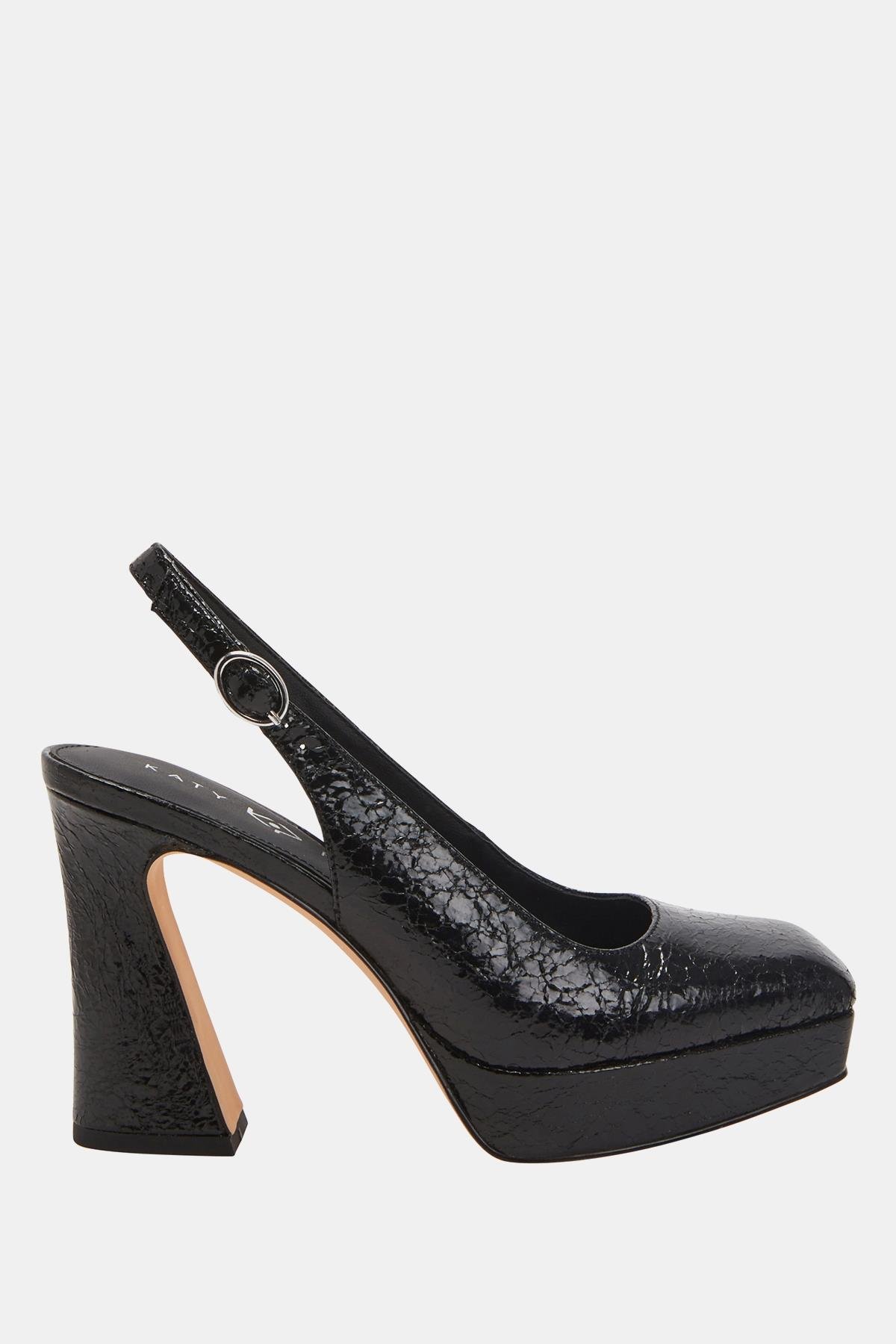 Katy Perry Sling, kalın bir platform topuğa ve ayarlanabilir askılı sırt kayışına sahiptir.