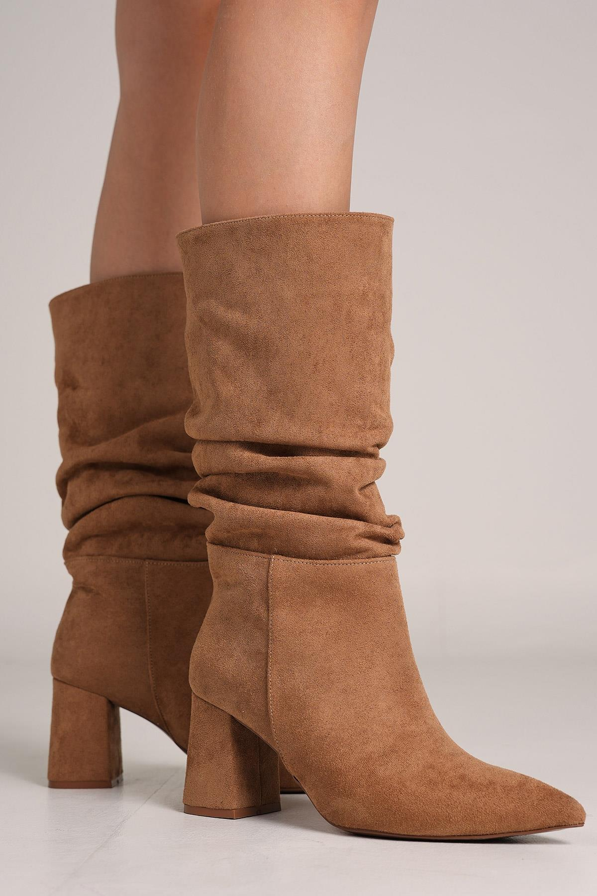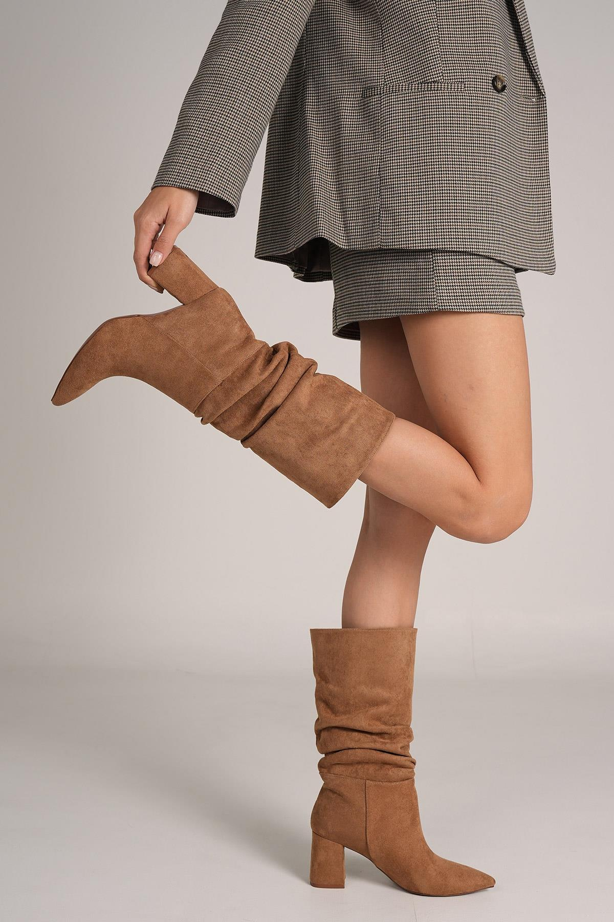 Luna Kadın Camel Sivri Burun Kalın Topuklu Çizme