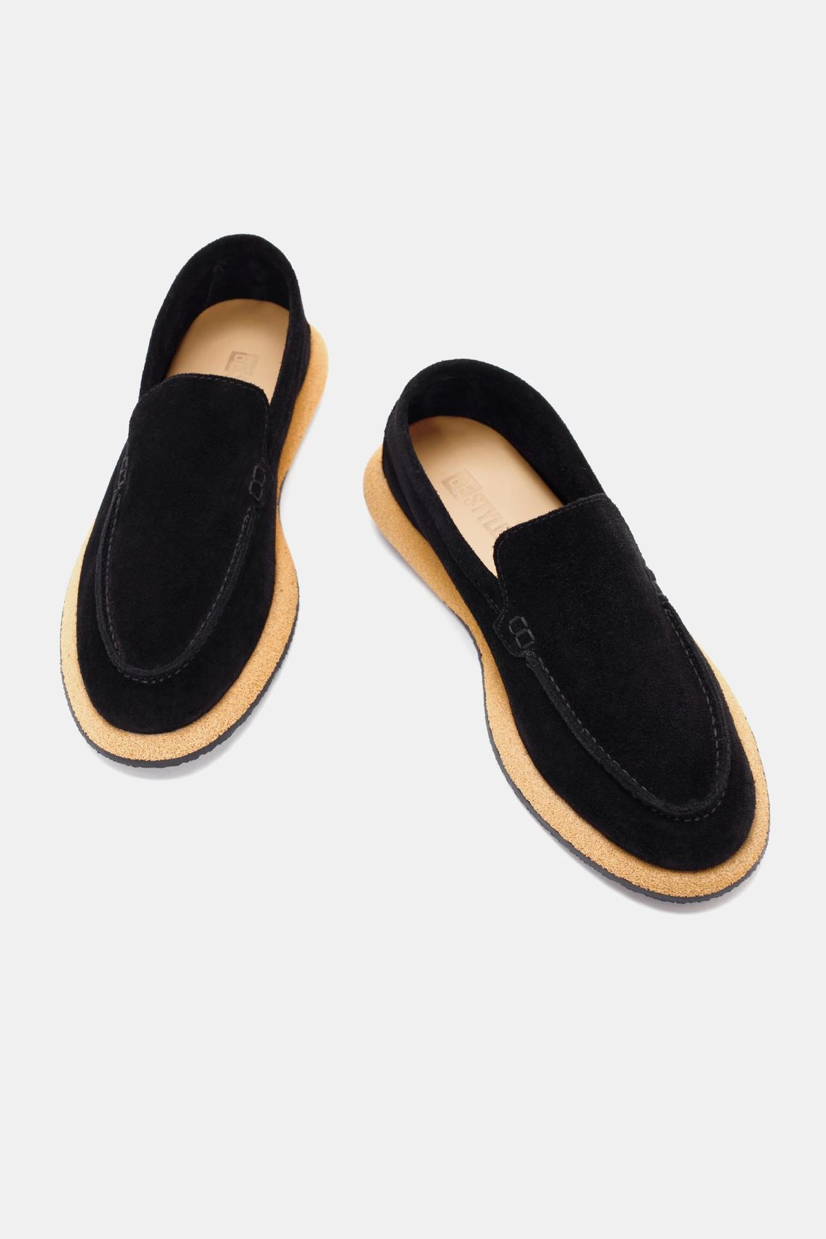 Yüksek kaliteli süet deri malzemesi ve dayanıklı tabanıyla uzun süreli kullanım sağlar. Siyah rengi, çeşitli kombinlerle kolayca uyum sağlayarak her tarza şıklık katar.