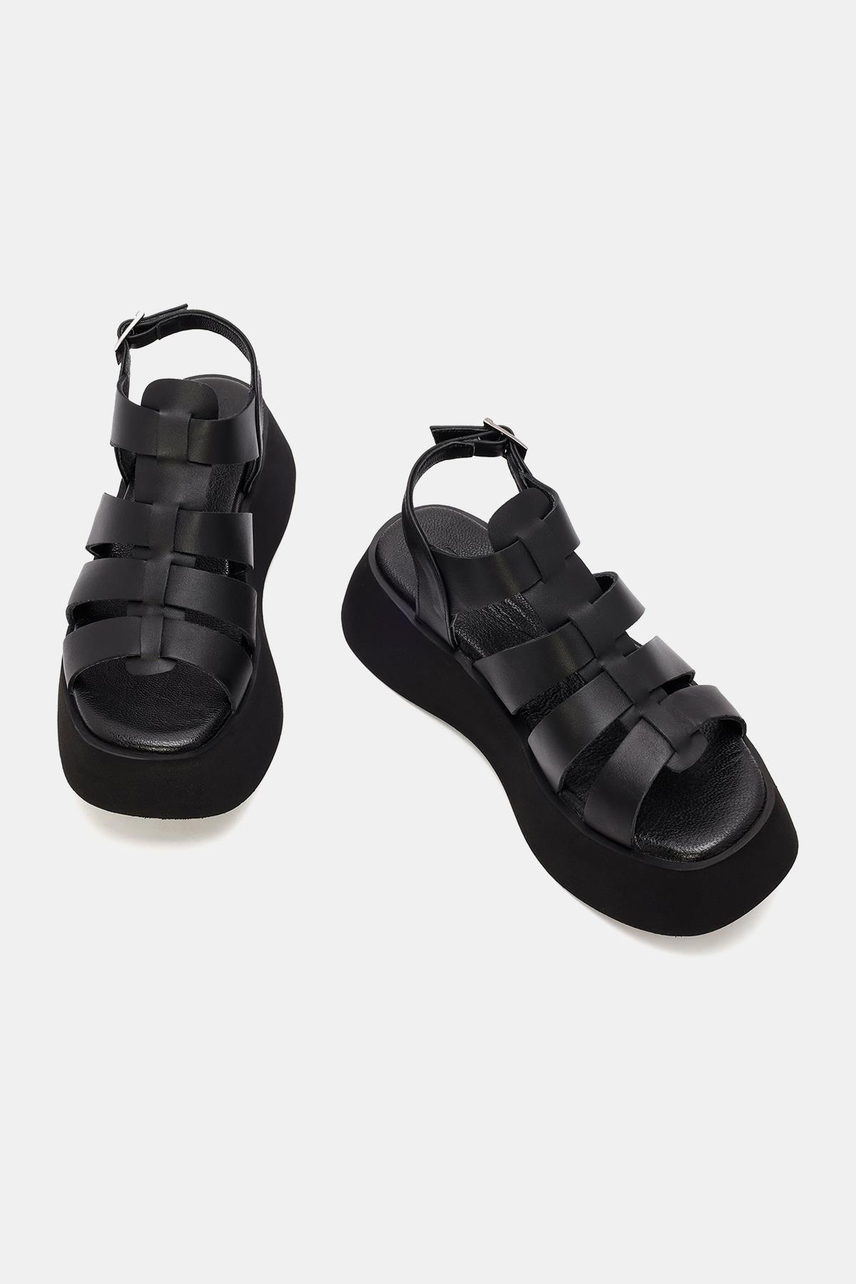 Mariel Kadın Siyah Gerçek Deri Sandalet
