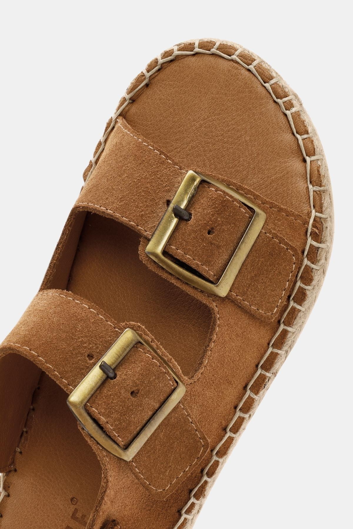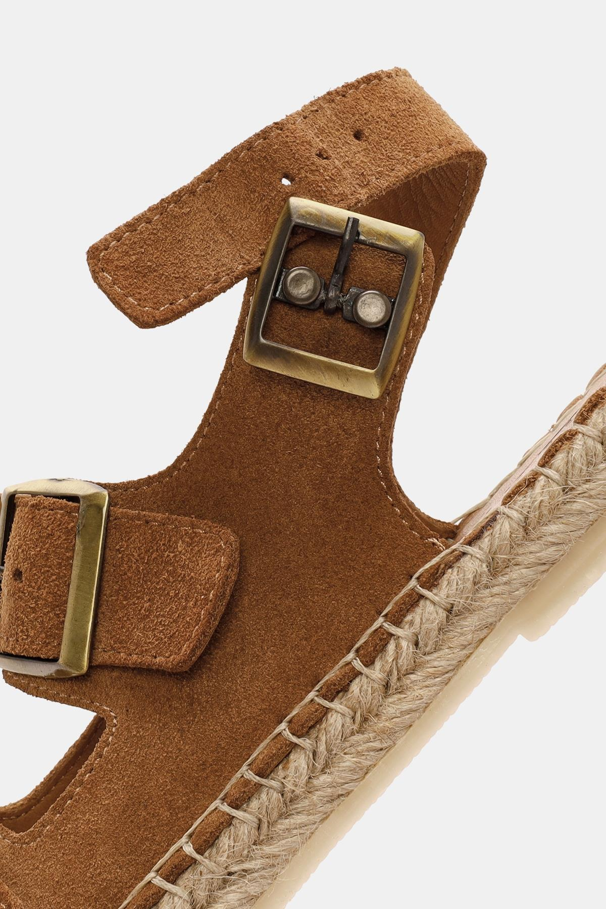 Mary Kadın Camel Süet Deri Espadril Sandalet, yazın vazgeçilmezi. Camel rengindeki süet deri tasarımı, sade ve şık bir görünüm sunarken, espadril tabanı da rahatlık sağlar. Plajda, şehirde ya da tatil mekânlarında stilinizi tamamlamak için ideal bir seçenek.