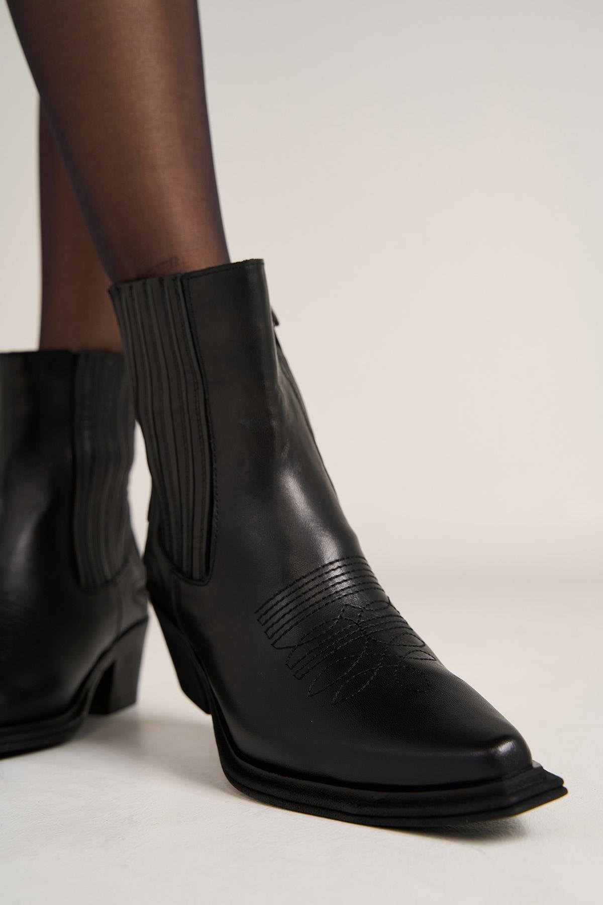 • Detaylar: Gerçek deri malzemesi, dayanıklılık ve uzun süreli konfor sağlar. 4 cm topuk boyu, günlük kullanım için rahat bir yükselti sunar. Western tarzı detaylara sahip olan bot, fermuar detayı ile modern ve pratik bir kullanım sunar, şık bir görünüm kazandırır.