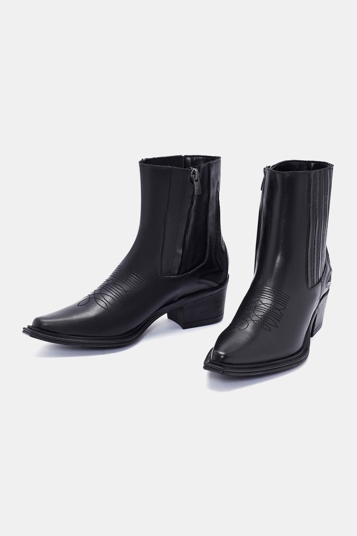 Maya Kadın Siyah Gerçek Deri Fermuar Detaylı Western Bot