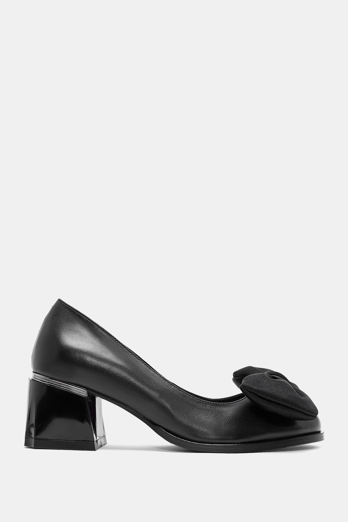 Melula Kadın Siyah Gerçek Deri Kurdele Detaylı Kalın Topuklu Ayakkabı