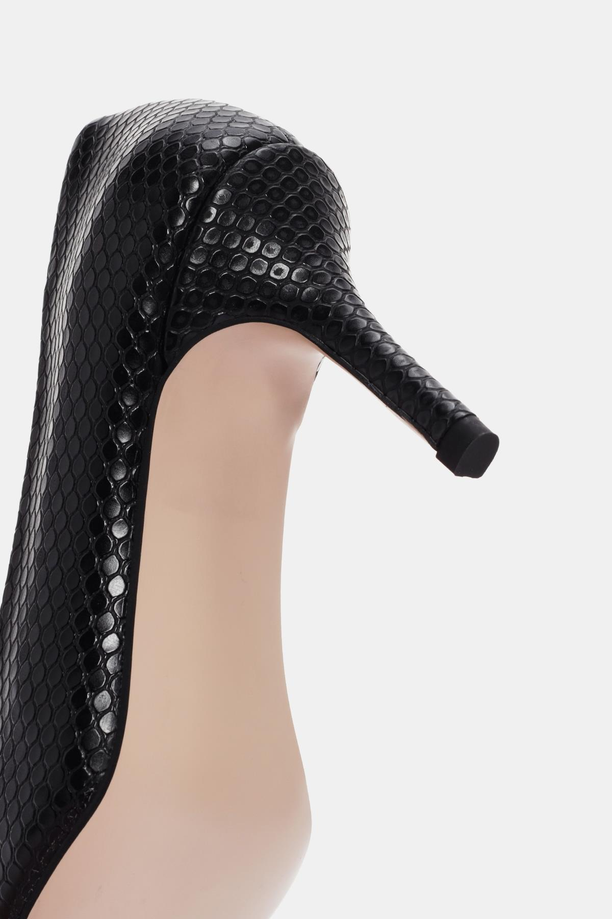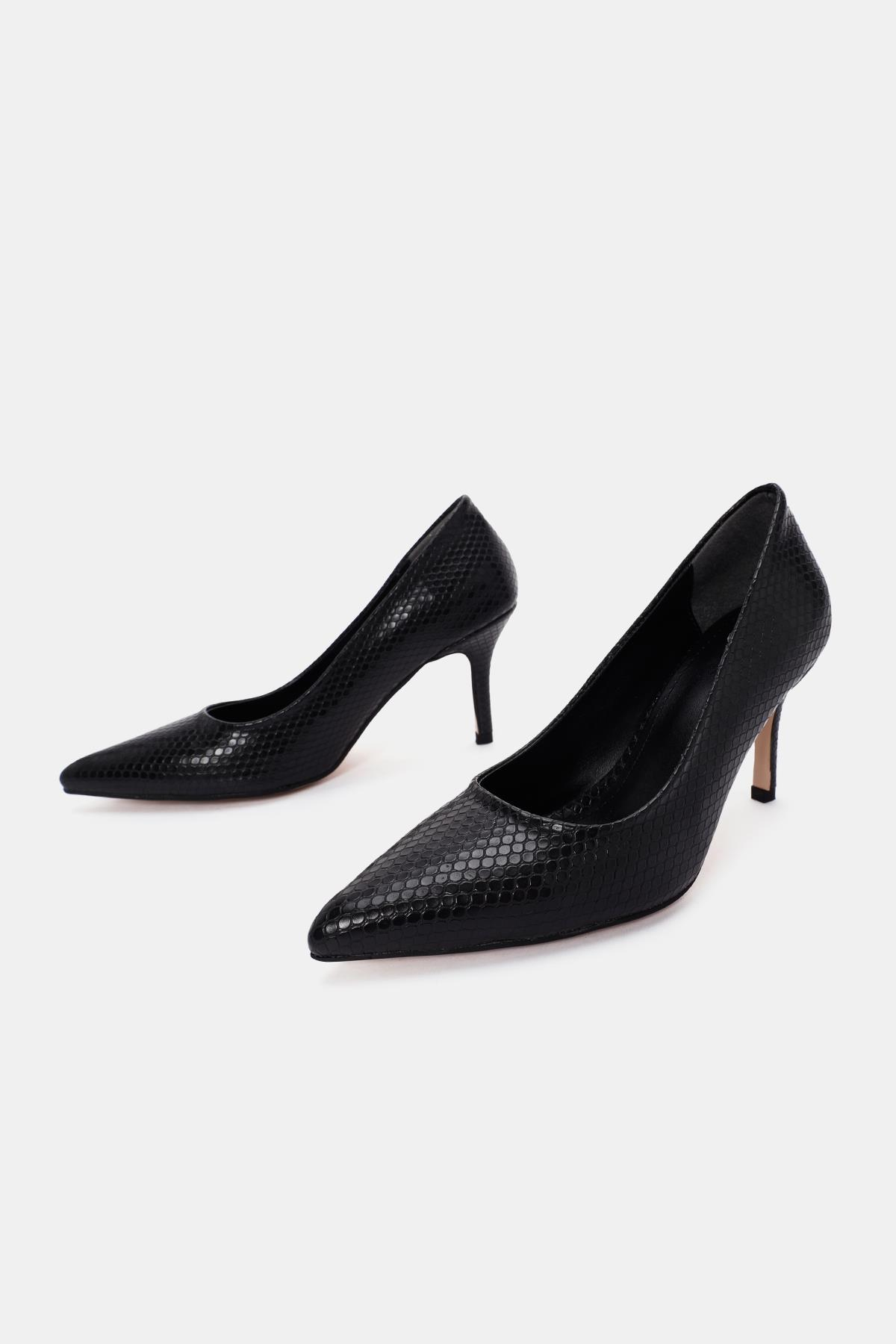 Rachyl Kadın Siyah Yılan Baskı Topuklu Ayakkabı, cesur ve şık bir tarzı yansıtır. Siyah üzerine yılan deseni baskısı, dikkat çekici ve modern bir görünüm sunarken, topuklu yapısı da zarafeti tamamlar. Özel günlerde veya günlük şıklığınızı tamamlamak için mükemmel bir seçenektir.