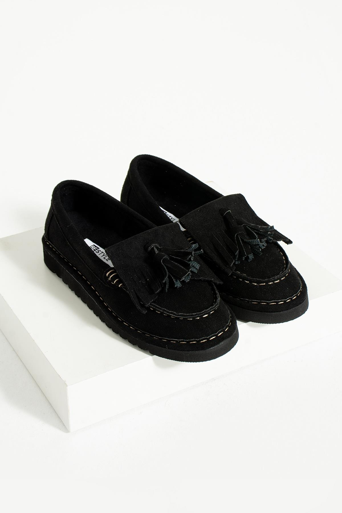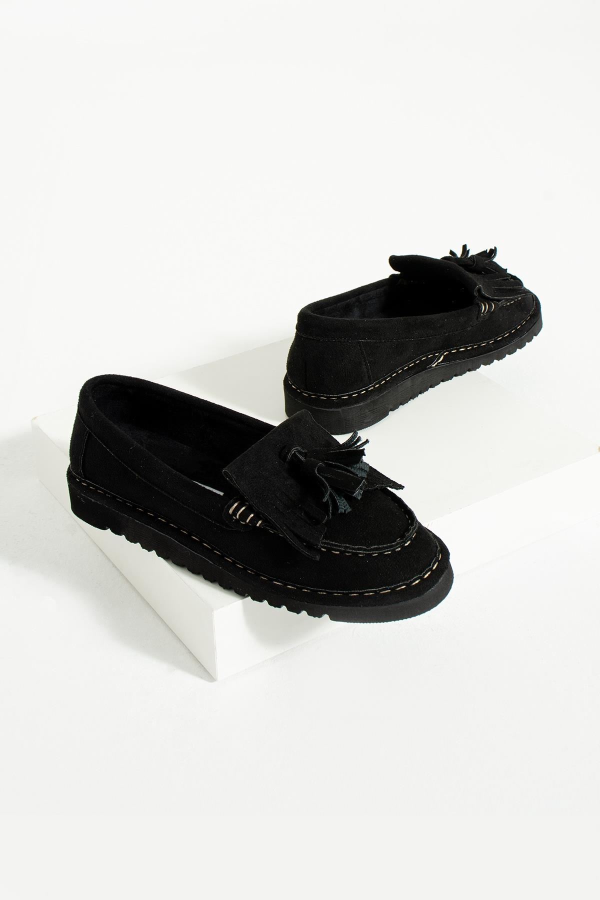 Simon Siyah Süet Püsküllü Kadın Loafer, zarif tasarımı ve kaliteli yapısıyla tarzınızı bir adım öne taşır. Şıklığı ve konforu bir arada sunan bu loafer, her adımda sofistike bir görünüm ve rahatlık sağlar. Dış materyali süet olan bu loafer, yumuşak dokusuyla dikkat çekerken, 4 cm topuk yüksekliği ile zarif bir duruş sunar. İç kısmında kullanılan kaliteli tekstil malzeme ise ayağınızı gün boyu rahat ettirir.