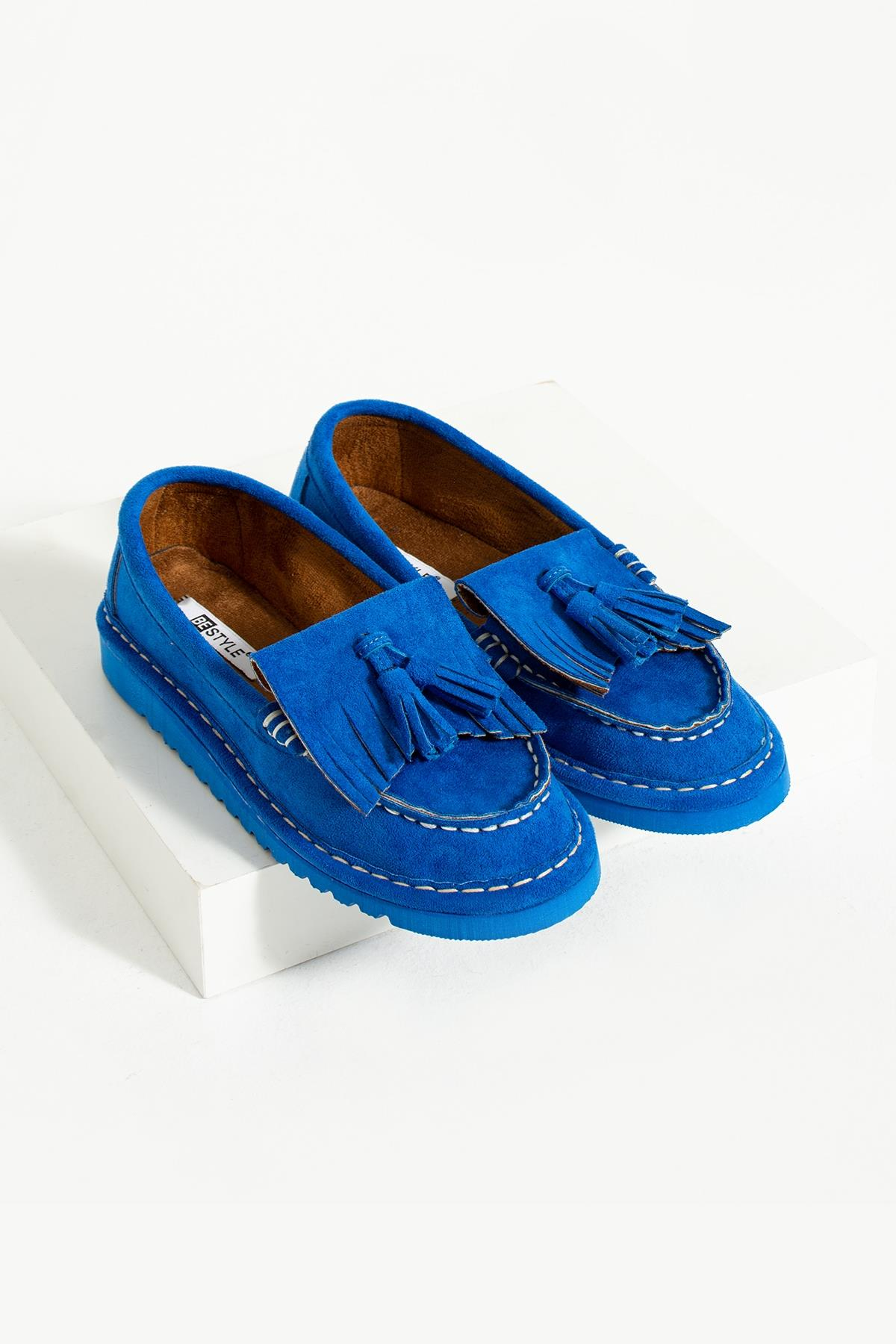 Simon Sax Süet Püsküllü Kadın Loafer, her türlü kombininizi mükemmel bir şekilde tamamlar. Özellikle iş toplantıları, özel davetler veya günlük şıklık için ideal bir tercihtir. Püskül detayları, loafer'a modern ve zarif bir dokunuş katarak stilinizi ön plana çıkarır. Dayanıklı ve hafif yapısı sayesinde gün boyu konforla kullanabileceğiniz bu loafer, her adımda zarafeti ve rahatlığı bir araya getirir.
