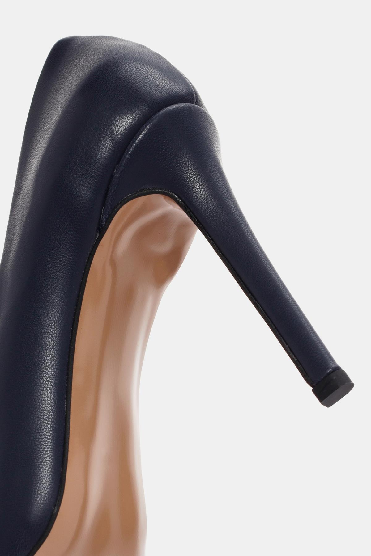 Sylvy Kadın Lacivert Topuklu Ayakkabı, zarafeti ve şıklığı bir araya getirir. Lacivert rengi, klasik ve sofistike bir görünüm sunarken, topuklu yapısı da feminen bir tarz sağlar. Özel günlerde veya günlük kullanımda stilinizi tamamlamak için mükemmel bir seçenektir.