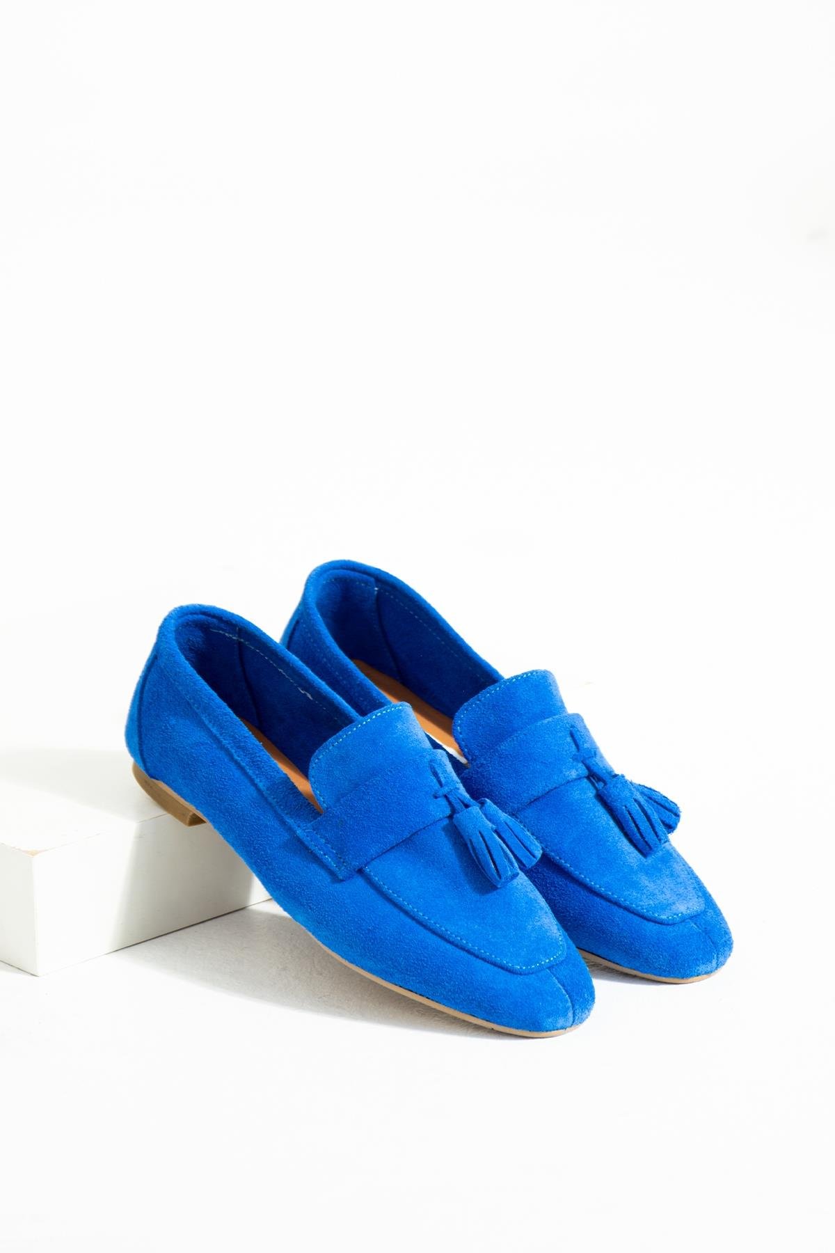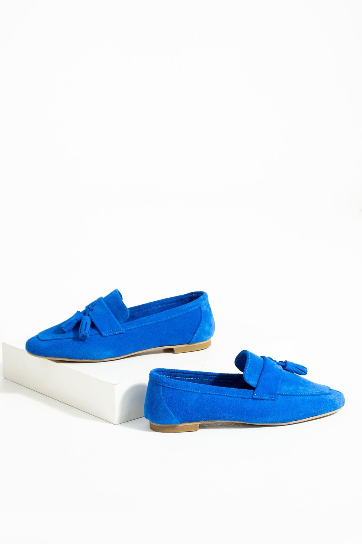 Trufle Püskül Detaylı Sax Süet Hakiki Deri Kadın Mokasen, Bestyle markasının zarafet ve konforu bir araya getiren seçkin tasarımlarından biridir. Hakiki süet deri dış materyali ile üretilen bu mokasen, hem lüks bir dokunuş hem de dayanıklılık sunar. Sax rengin canlılığı, bu mokasene modern ve sofistike bir hava katarken, püskül detayları ayakkabıya hareketli ve şık bir görünüm kazandırır.