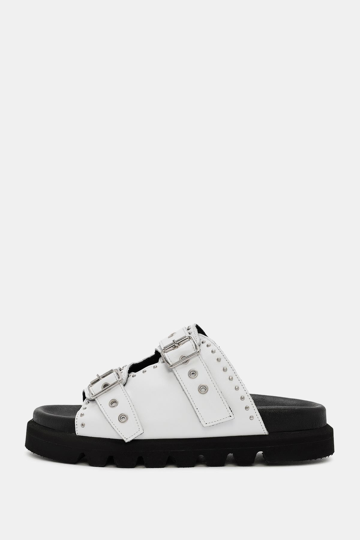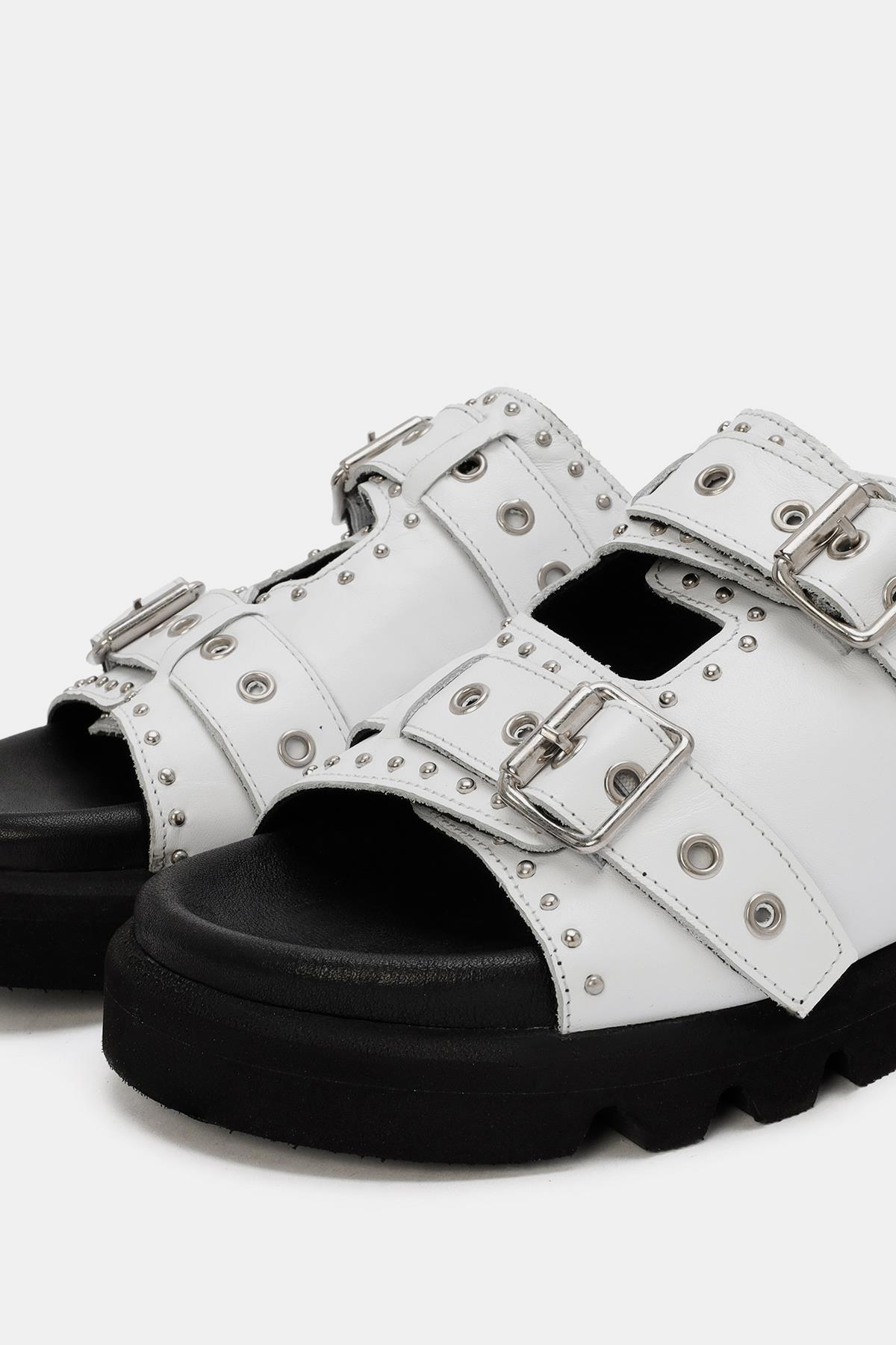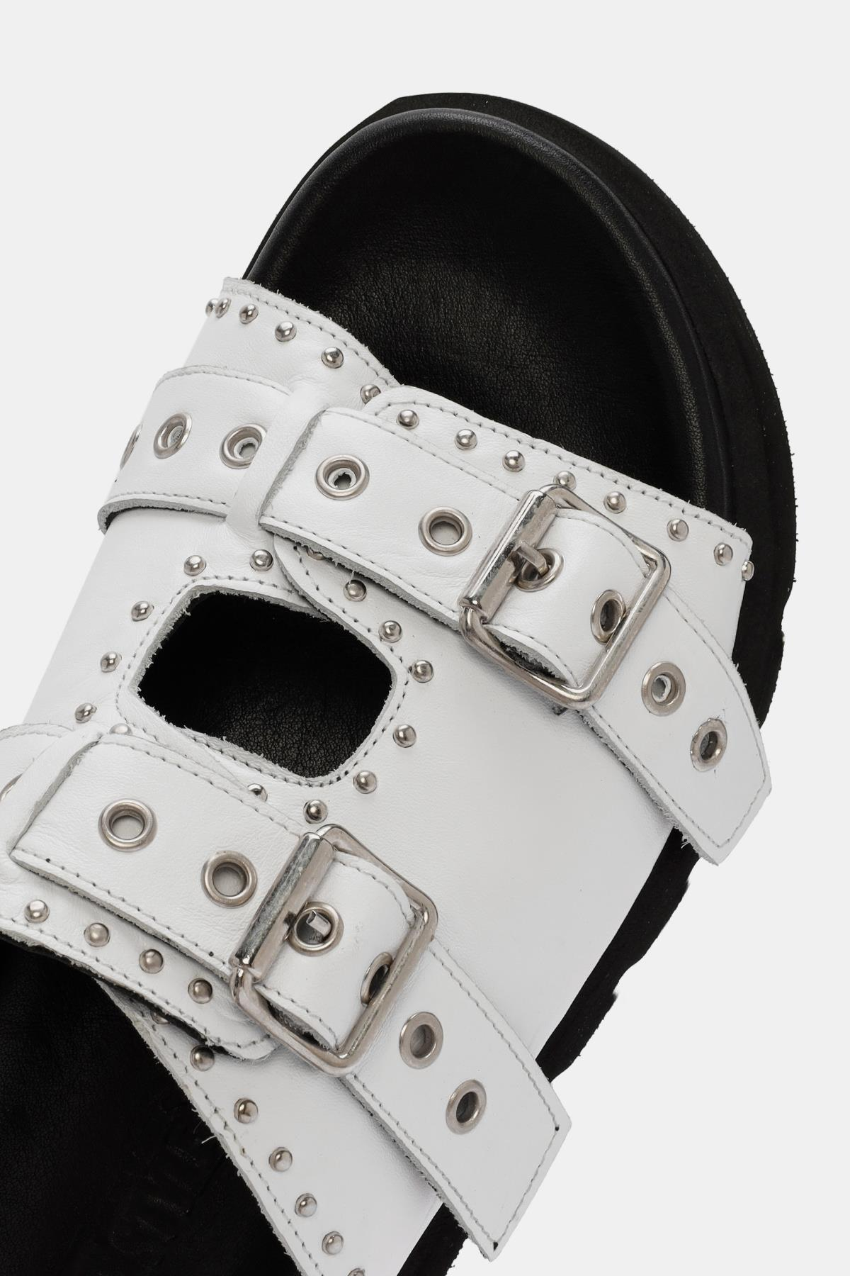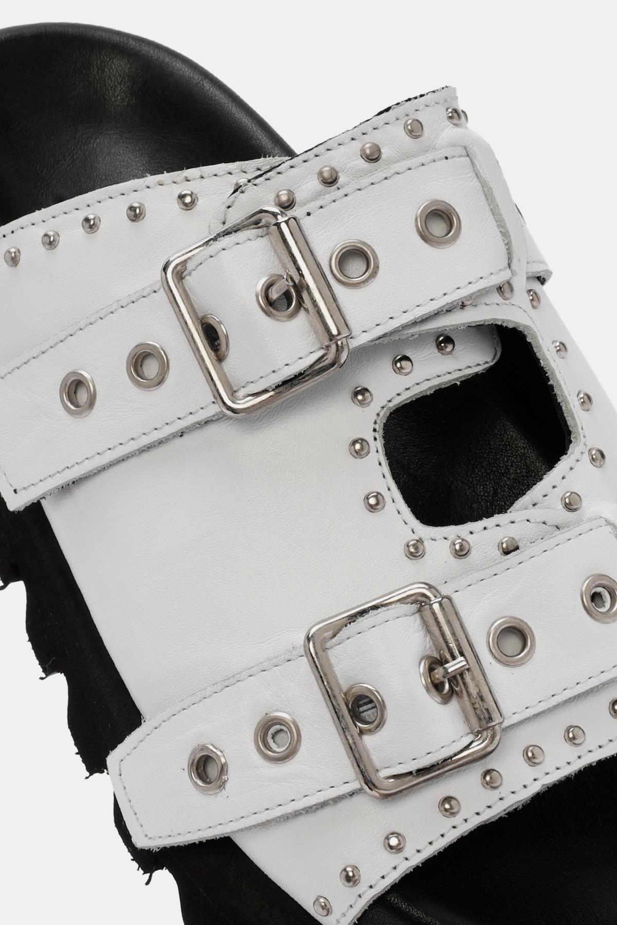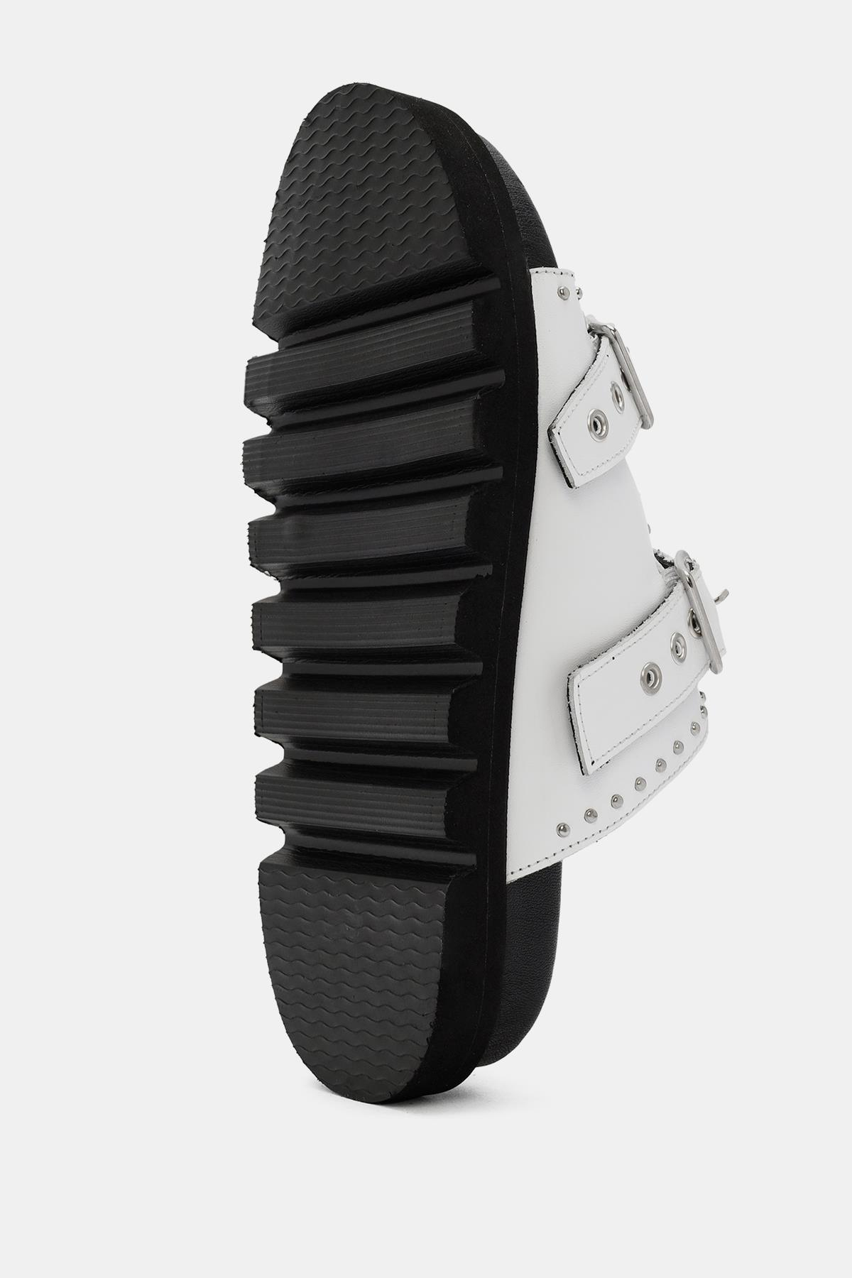 Zley Kadın Beyaz Demir Tokalı Gerçek Deri Terlik, hem şıklığı hem de konforu ön planda tutar. Gerçek deri malzeme, kaliteli ve dayanıklı bir yapı sunar. Konforlu kauçuk tabanı ve yumuşak deri iç tabanı, uzun süreli rahatlık sağlar. Şık demir tokalı ayarlanabilir kayış, hem estetik hem de pratik bir kapanış sunar. Modern ve zarif beyaz rengi, yazlık kombinlerinizin mükemmel tamamlayıcısıdır. Zley, her adımda stilinizi ve konforunuzu artırır.